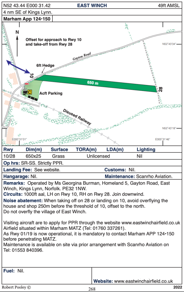 Location: North of A47, near the village of East Winch, 4nm SE of Kings Lynn under the northern edge of RAF Marham’s MATZ